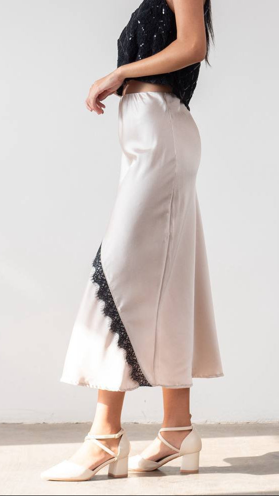✨ Falda Lencera Satinada con Encaje · 4 colores