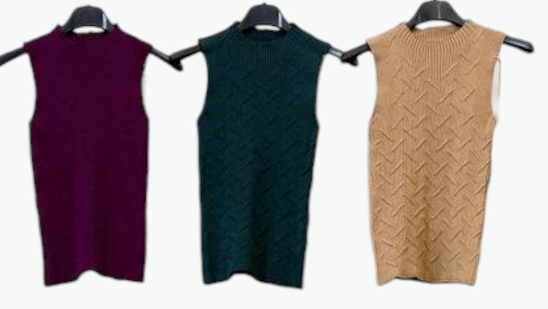 Este top de punto elástico tiene un diseño geométrico que marca la diferencia sin complicaciones. Corte ajustado, cuello redondo alto y un fit limpio que queda de diez con blazer o solo.