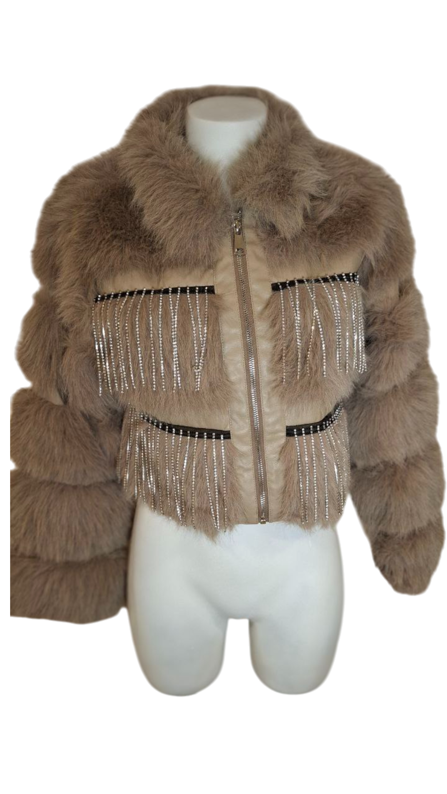 Chaqueta “Crystal Rider” – Polipiel con efecto pelo suave y cascada de cristales 2 colores