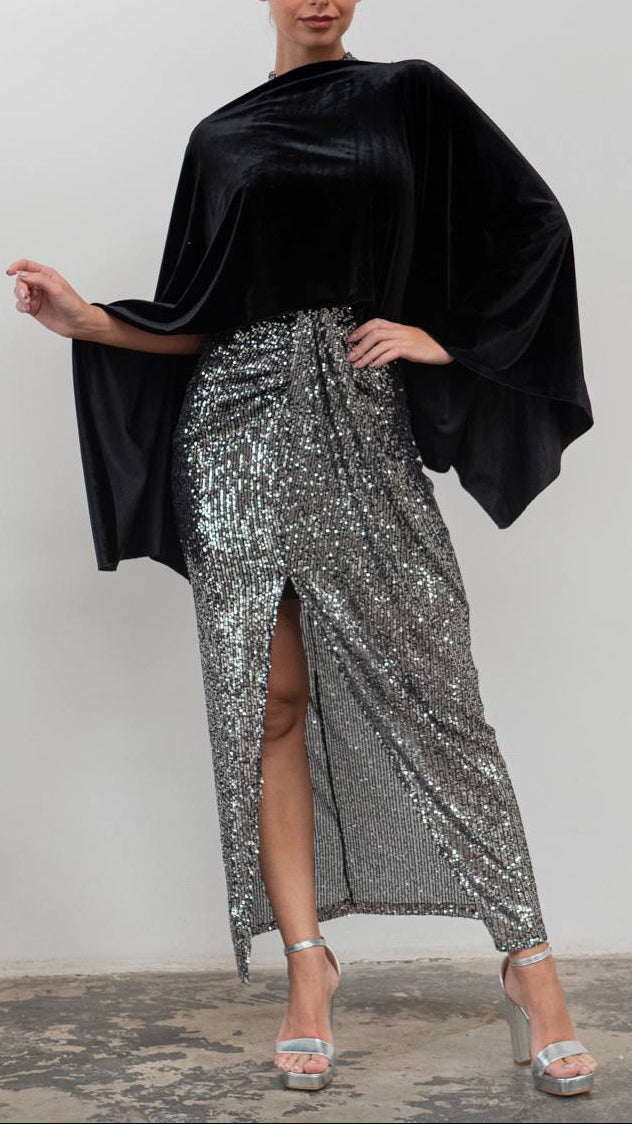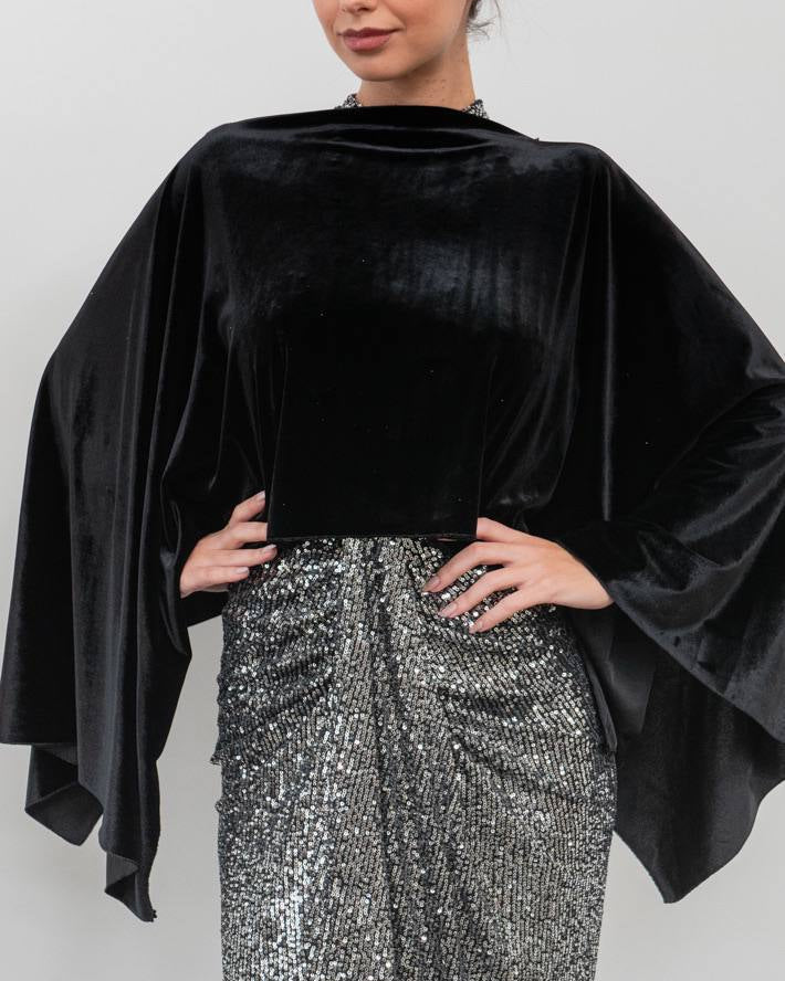 Capa corta de terciopelo con caída fluida, efecto capa de supermodelo.