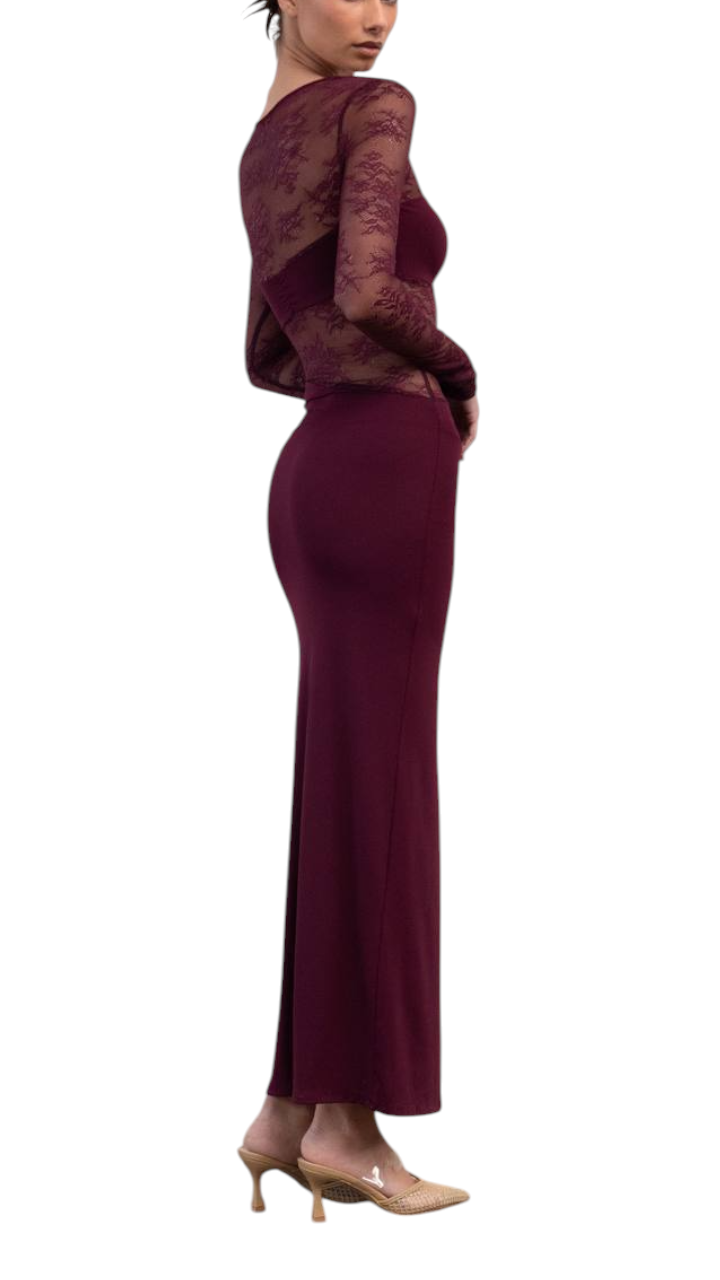 Vestido Largo Encaje Transparente ·2 colores “Rubí Secreto / Medianoche”